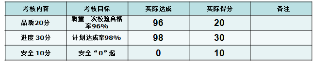 3.安全為車間當月的安全考核得分,具體為發生一起安全事故本月車間安全考核得分為0分。 |