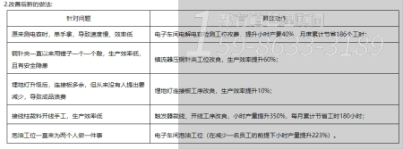 同時,人均產(chǎn)值提升27.7%,庫存積壓直接下降23.0%,所以導(dǎo)入有效的精益生產(chǎn)管理咨詢,能夠協(xié)助企業(yè)管理升級,節(jié)省可控成本。若是貴司也有管理咨詢的話,可百度搜索“邦有道管理顧問”進(jìn)行精益管理了解,或直接撥打管理咨詢熱線:159-8633-3189。